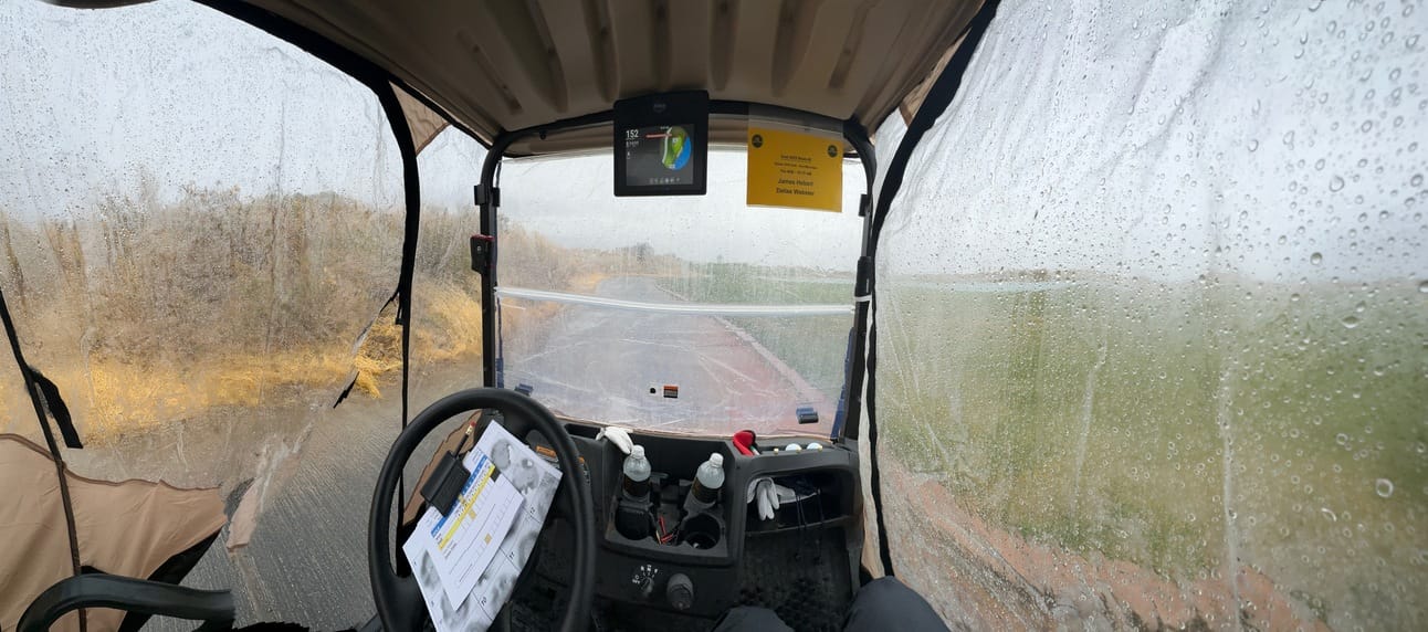 The weather was ridiculous, but inside the golf cart we were protected from the wind and rain. It kept us dryer and out of the wind. It easily felt 10-20 degrees warmer in the golf cart.