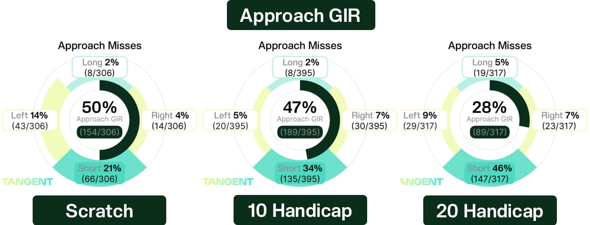 There are many potential reasons for missing greens short and TANGENT can help us find out which root cause is ours so that we can work on the right things to improve. Here are the most common reasons for missing greens short:
