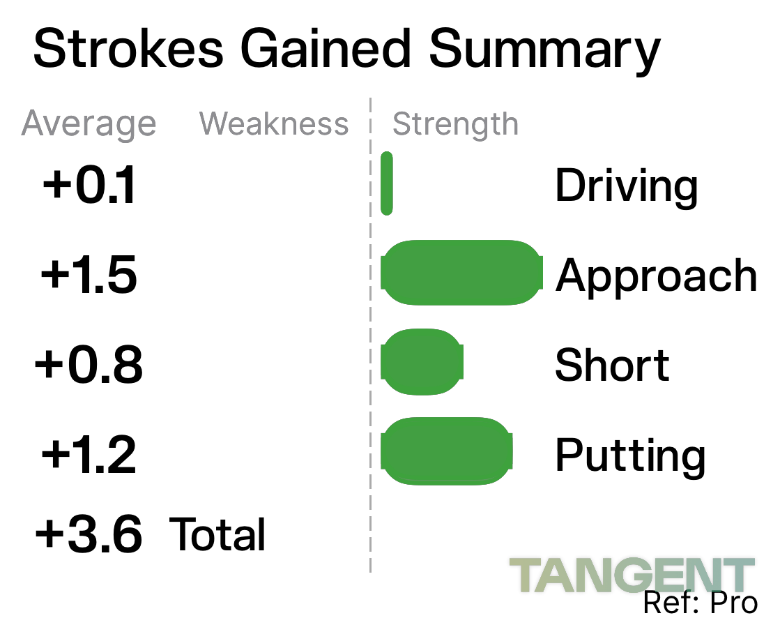 Smotherman’s opening 62 is what a dream Tangent Four card looks like. No three putts. No two chips. No penalties. No messy recoveries. Just clean golf that lets his strengths show up. Over the next two rounds, the pattern changes. In both round two and round three he recorded one three putt and one two chip. In the final round he added another three putt. That is five Tangent Four events over the last three days, in a tournament he lost by two.