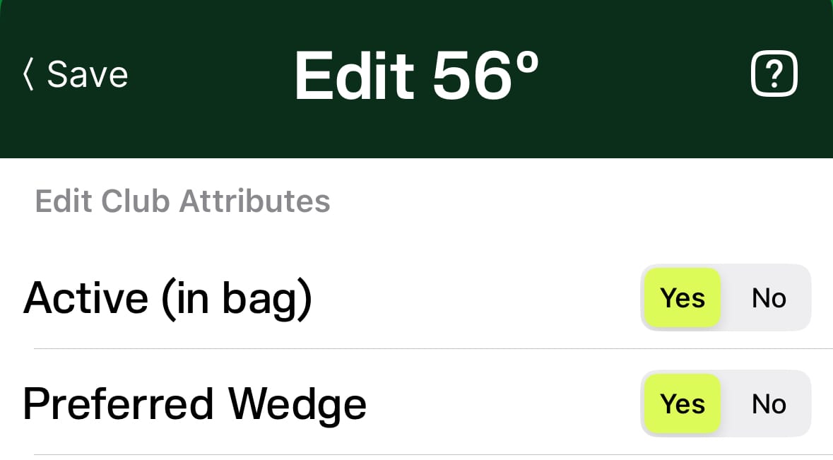 In TANGENT, you can also set a preferred wedge. This will tell AI Caddie that for shots under a full swing, you prefer to use this particular wedge. This is useful if you have say a 56* and a 60*, but you prefer to use the 56* whenever possible. If you don’t have a preferred wedge, TANGENT defaults to suggesting the shortest club in your bag. The ‘preferred wedge’ option overrides this and keeps you from having to edit all those shots to change the wedge after a round.