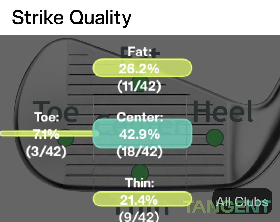 Range feedback tools like foot spray and impact tape reveal your strike pattern in practice, but they rarely reflect real on-course performance. The most accurate way to identify your true miss is to track your strike location during actual rounds. The Tangent Golf app is built exactly for this — log each shot’s impact location during a round, and review your patterns over time to find and fix your actual bias.