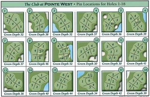 Depending on the courses you play regularly, there are several ways to get the pin location. Many clubs have some kind of daily pin sheet that could look like this: